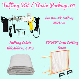 We have choosen the best-selling The Pro duo tufting machine with all other tufting supplies. This kit has called the Basic-01 tufting starter kit.